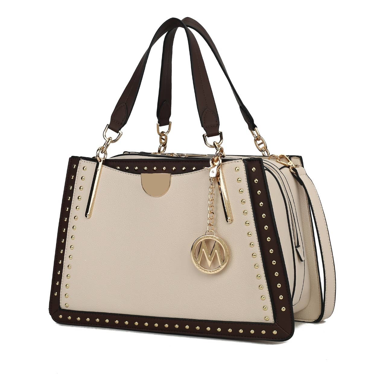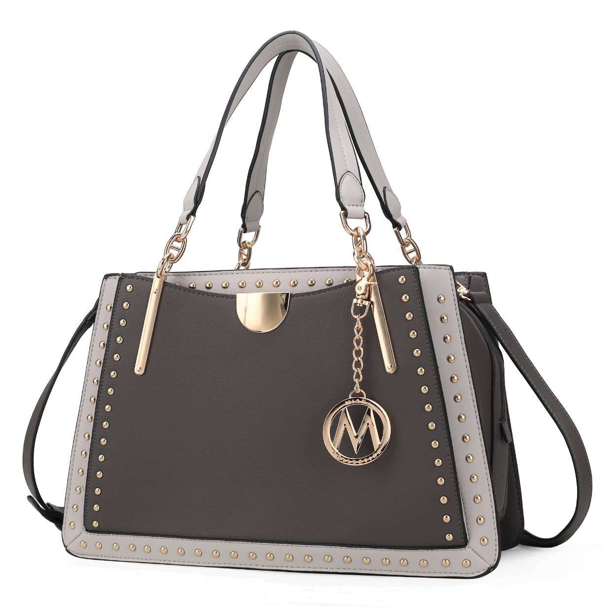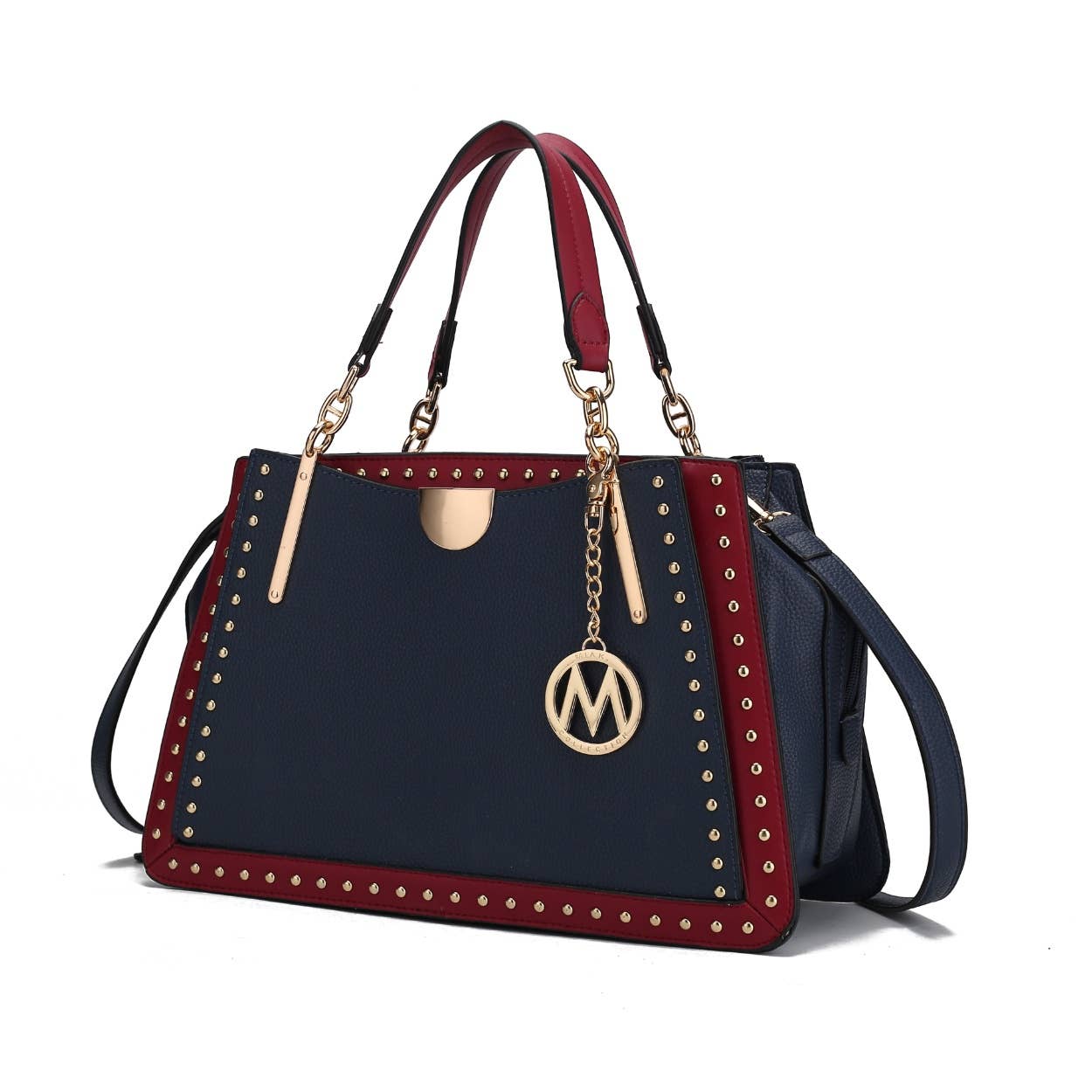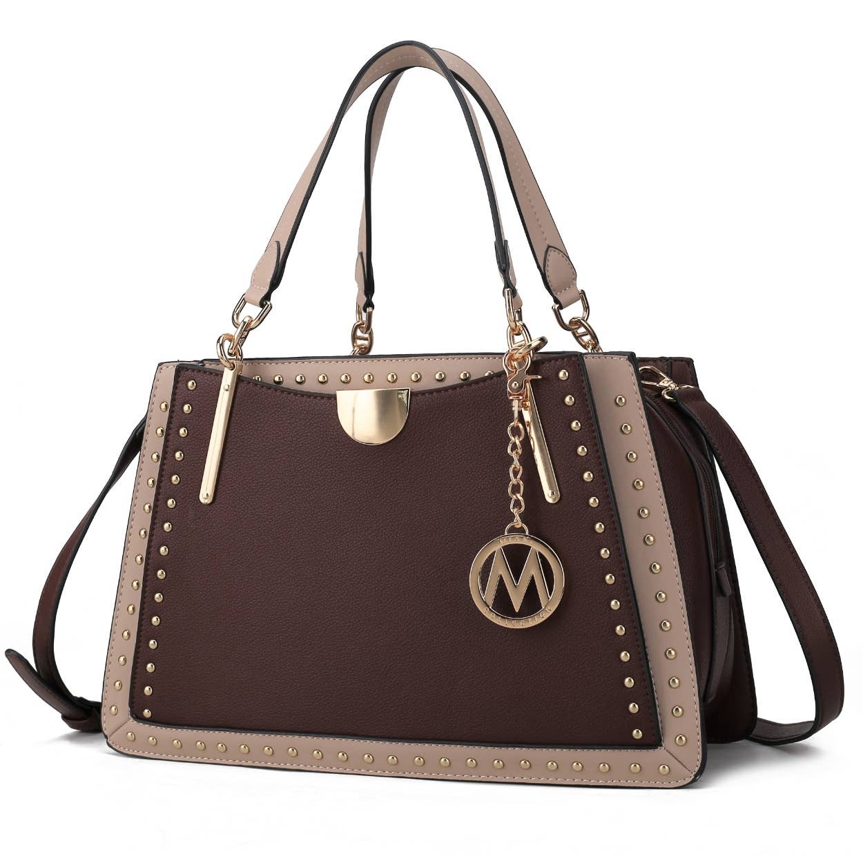 Introducing the Mia K Aubrey Satchel: Crafted from high-quality vegan leather with luxurious gold tone embellishments. This chic handbag features a spacious three-compartment design, convenient top zipper closure, and multiple pockets for organization. With its versatile crossbody strap and timeless design, it's the perfect blend of style and functionality. Choose from a range of vibrant colors and make a statement while supporting sustainable fashion.